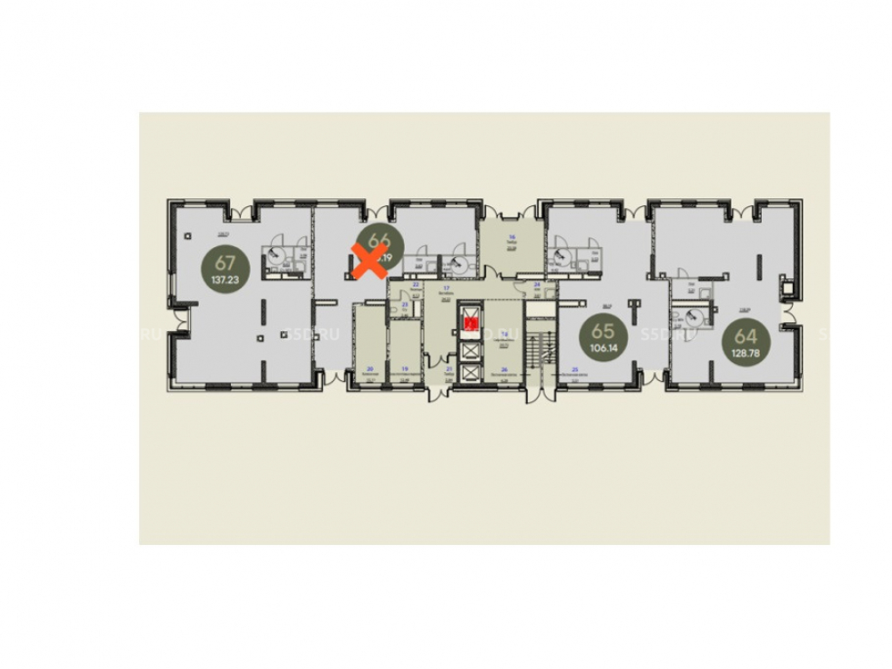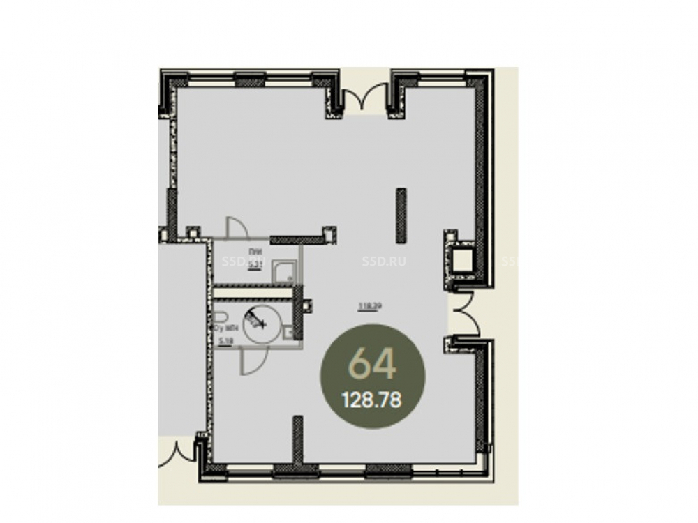 Общая площадь: 128.8 м2