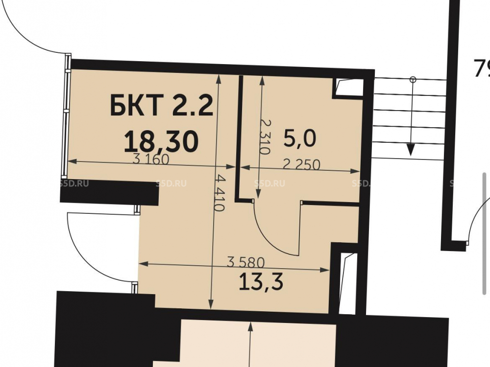 Общая площадь: 18 м2