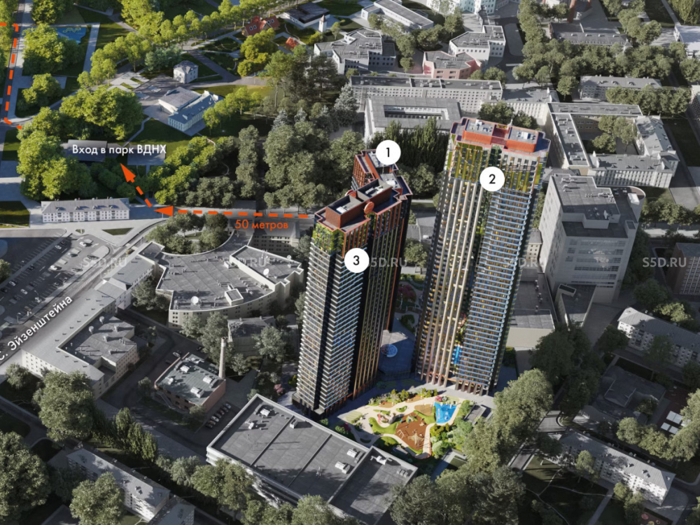 До метро «ВДНХ» – 1,8 км, или 19 мин пешком. До метро «Ботанический сад» – 1,3 км.