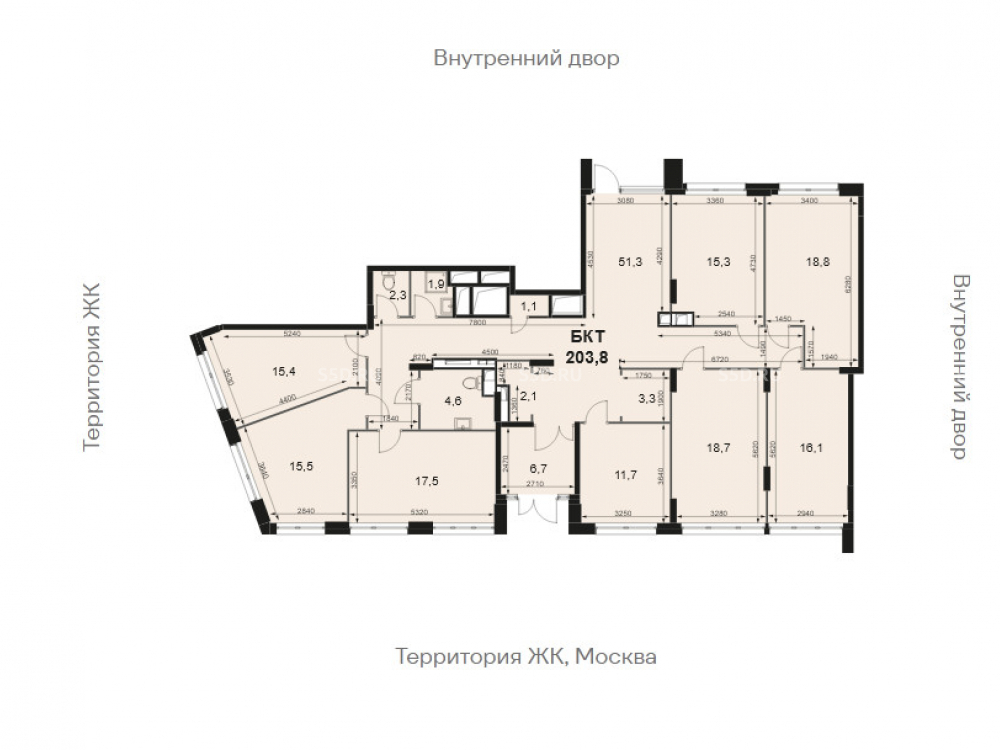 Общая площадь: 203.8 м2