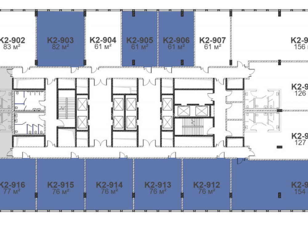 Каждый офис имеет прямой вход из лифтового холла, собственные мокрые точки, удобный доступ к сервисному лифту. Остекление в пол. Шаг колонн 8,6*8,6.