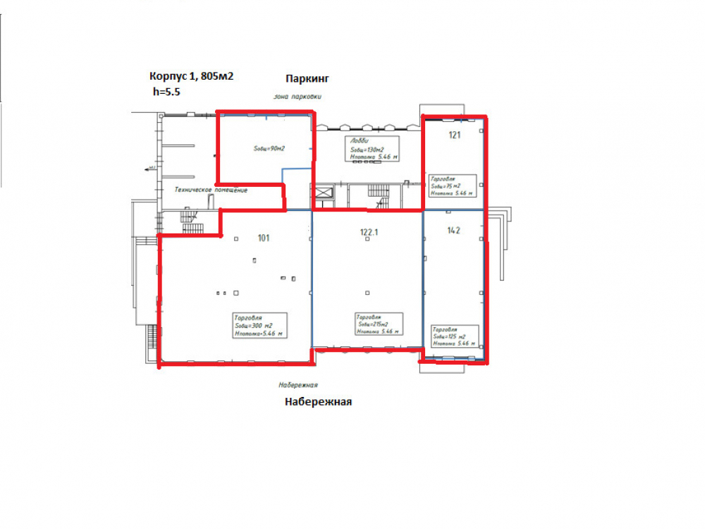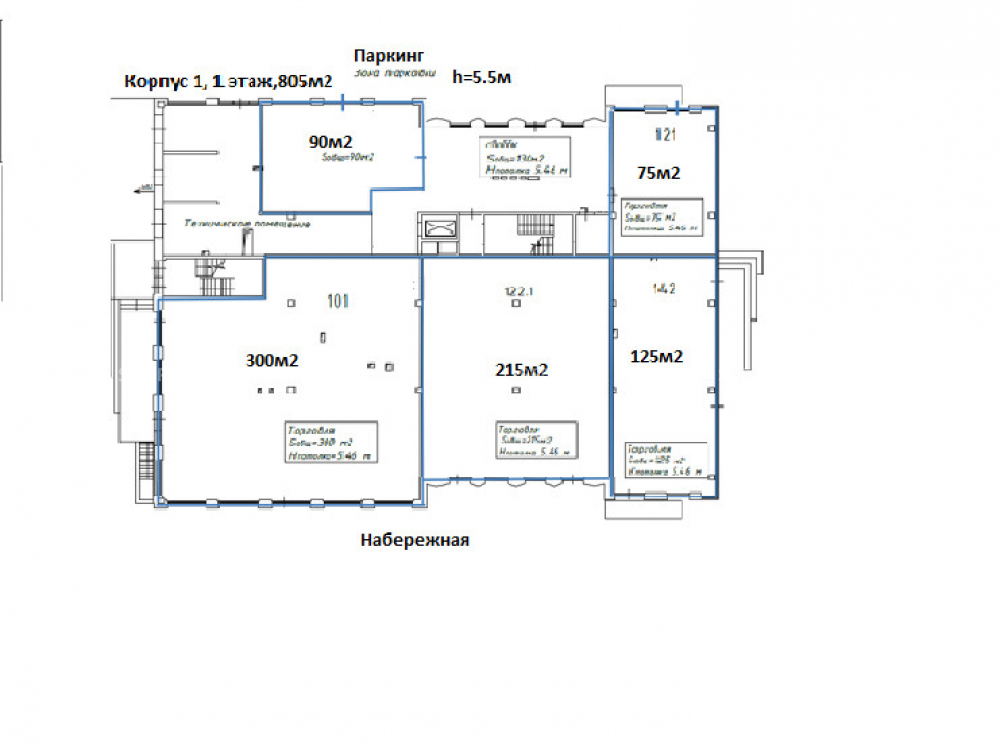 1 этаж, 805 м2, возможно деление/объединение в иные блоки: