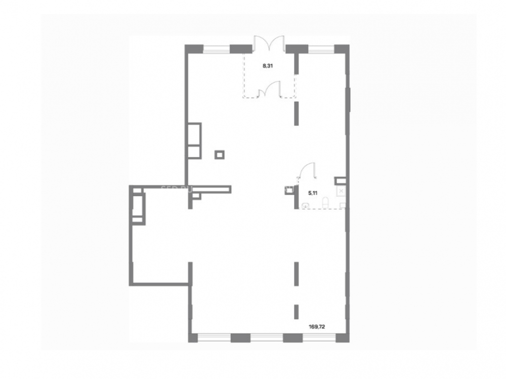 Технические характеристики: общая площадь 183,14 кв.м. • первый этаж жилого 29 этажного дома • электроэнергия 37 кВт. • отдельный вход с фасада • без отделки • потолки 4 метра • витринные окна • первая линия.
