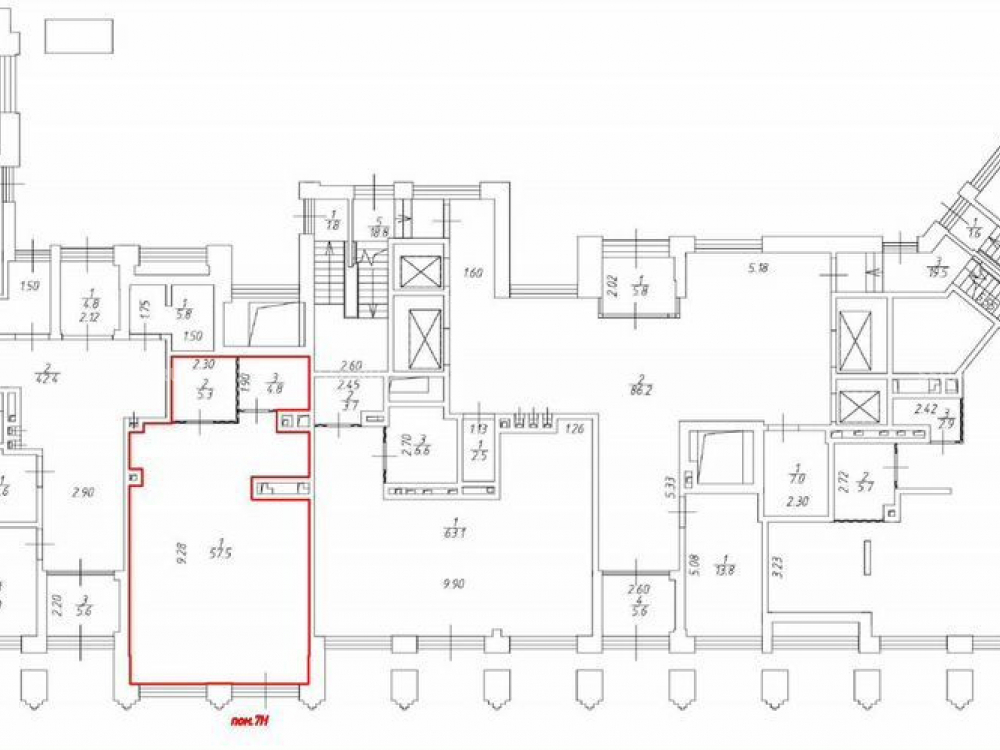 Общая площадь 67.6 кв.м. 1-й этаж жилого дома. Отдельный вход с фасада. Витринное остекление. Высота потолков 5,5-6 м. Все центральные коммуникации. Эл. мощность 15 кВт, есть возможность увеличения. Свободная отрытая планировка. Состояние помещения - в бетоне. Парковка перед помещением. Вход в подъезд - соседняя дверь.