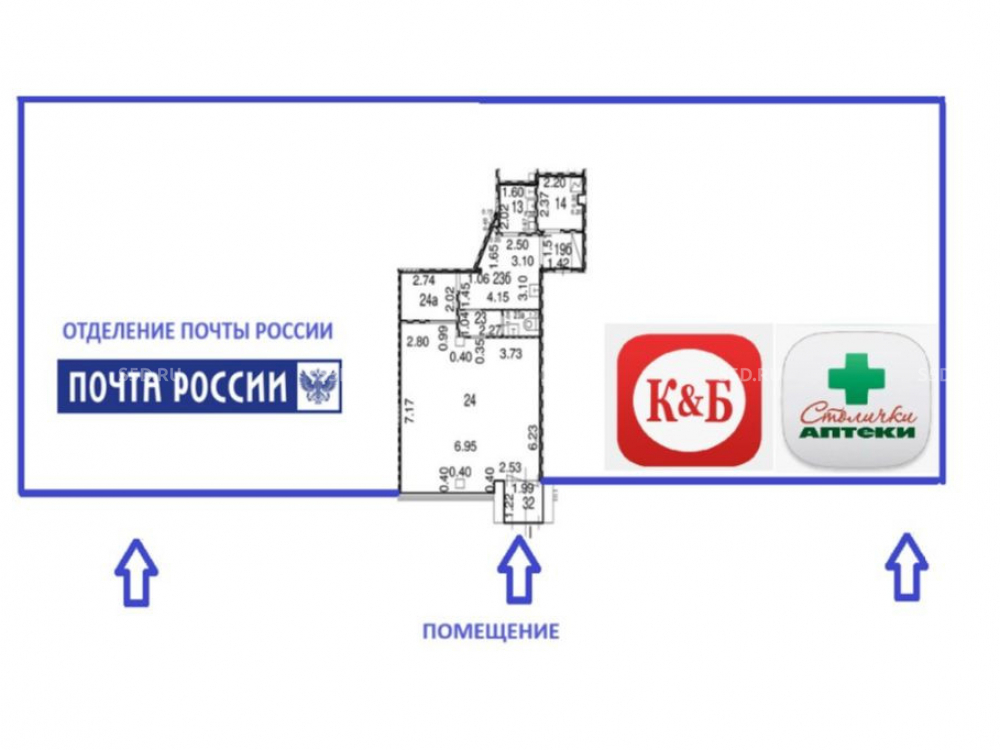 Соседние помещения занимают: Отделение Почты России, КиБ, Столички, Самокат и др.