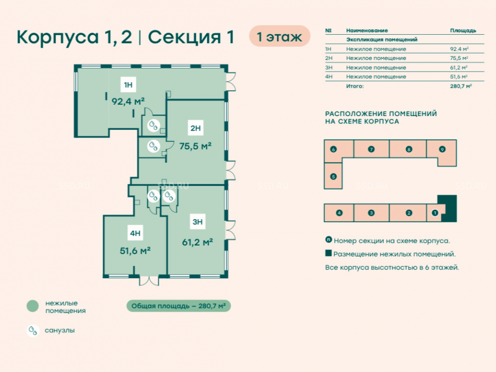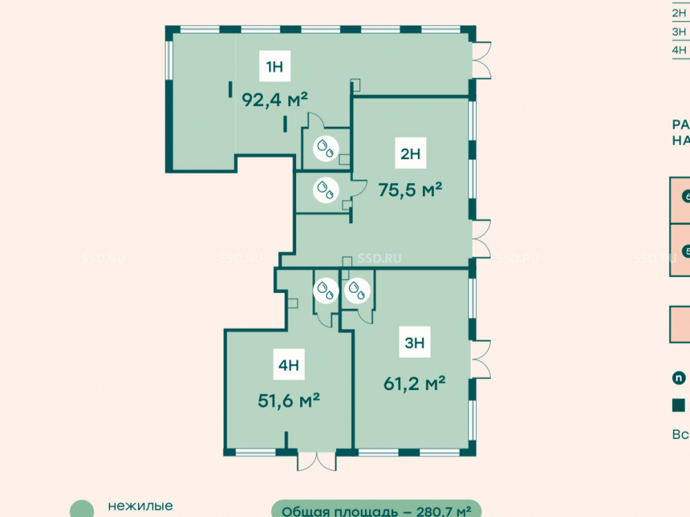 Общая площадь: 280.7 м2