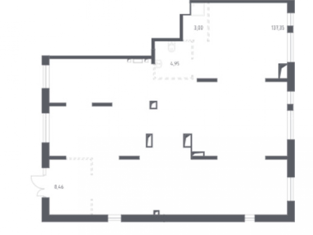 Первый этаж с витринными окнами 11-ти этажного жилого дома, площадью 153,8 м2. Отдельный вход с центральной улице, свободная планировка. Угловое помещение в центральном торговом коридоре ЖК, напротив многоуровневый паркинг на 700 автомобилей.. Высота потолков 4 м, количество электроэнергии 21 кВт с возможным увеличением. Состояния помещения - бетон.