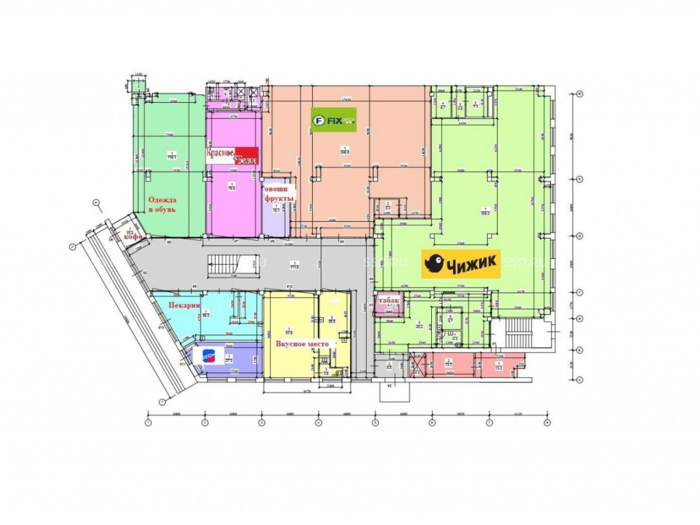 Арендаторы: Супермаркет Чижик, Фикспрайс, Одежда и Обувь, кафе Вкусное место, магазин Красное и Белое, пекарня, Озон, Озон Фреш, ресторан.