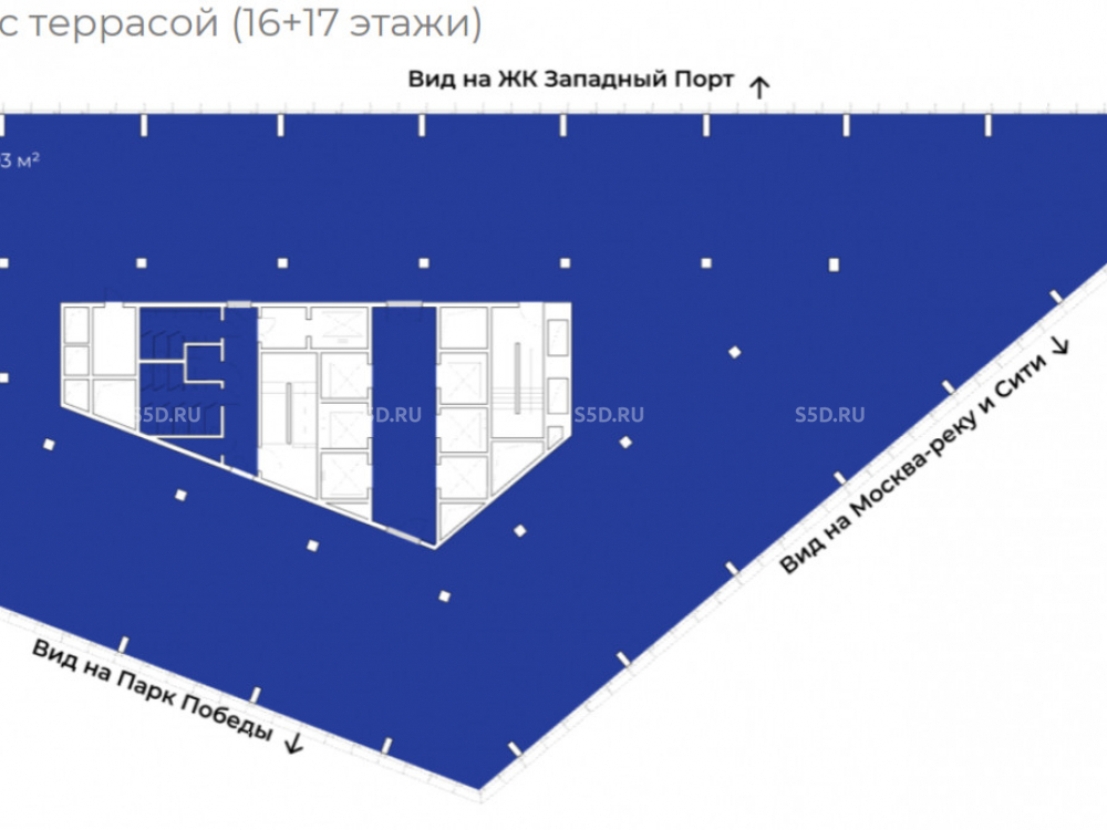Площадь помещения с террасой: 2084,6 квадратных метров. 16 этаж.