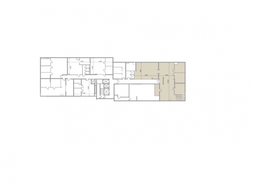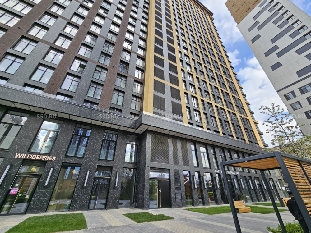 -1 (цокольный) этаж 24-х этажного апарт-комплекса бизнес-класса, площадью 222.6 м². Витринные окна, зальная планировка. Электрическая мощность 35 кВт. Высота потолков 3.7 м.