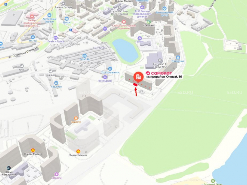 Помещение с арендатором Даркстор Самокат в ЖК «Зеленый остров» по адресу МО, г Котельники, мкр. Южный, 16 . Помещение внутри крупного жилого массива, напротив парковочного пространства. Зона пешеходного трафика. Проект эконом класса в г. Котельники из 6-ти жилых корпусов высотой 15-17 этажей, емкость ЖК — 2 900 квартир. Дом заселен.