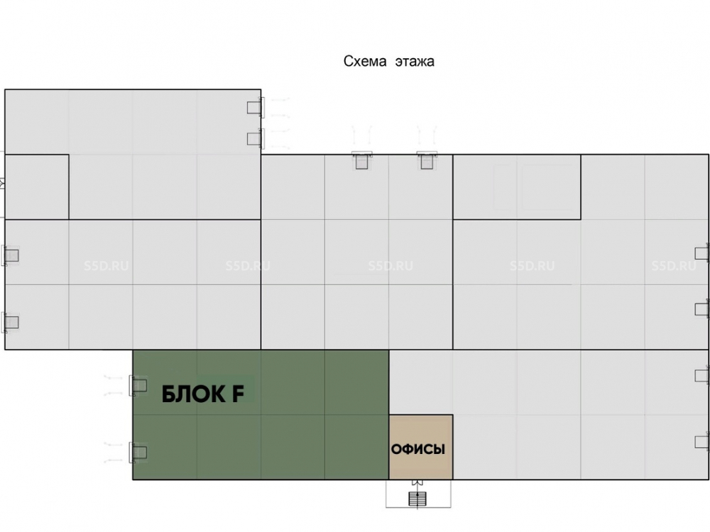 Площадь блока: 1 368 м² (складское помещение - 1 152 м², офис на 1-ом этаже - 216 м²), высота потолков склада - 10 метров; бетонный пол с антипылевым покрытием и нагрузкой - 7 тонн на м², сетка колонн складской/производственной площади - 12х24, 12 постов для грузового транспорта, электрическая мощность - 50 кВт, система водяного пожаротушения в автоматическом режиме, современная система воздухообмена, современная система очистки и подачи воды, парковочные места, места для загрузки еврофур и малотоннажных грузовиков.