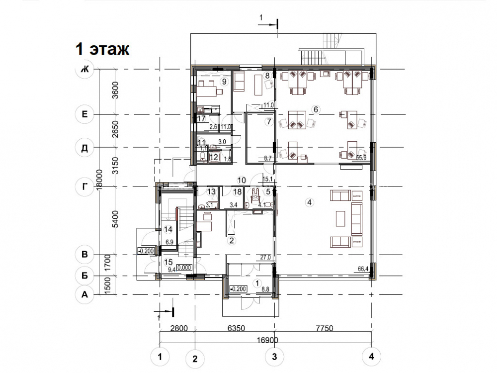 Здание имеет два наземных этажа, подвал и эксплуатируемую кровлю. Высота этажа 3,6 метра. Два обособленных входа, каждый этаж оборудован вторым эвакуационным выходом.