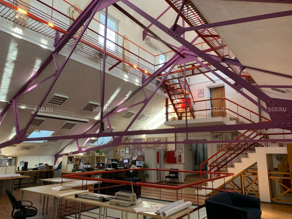Высокие потолки, большие и светлые окна, отдельный вход, пропускная система. Высота потолков - 5 м. Корпус оборудован