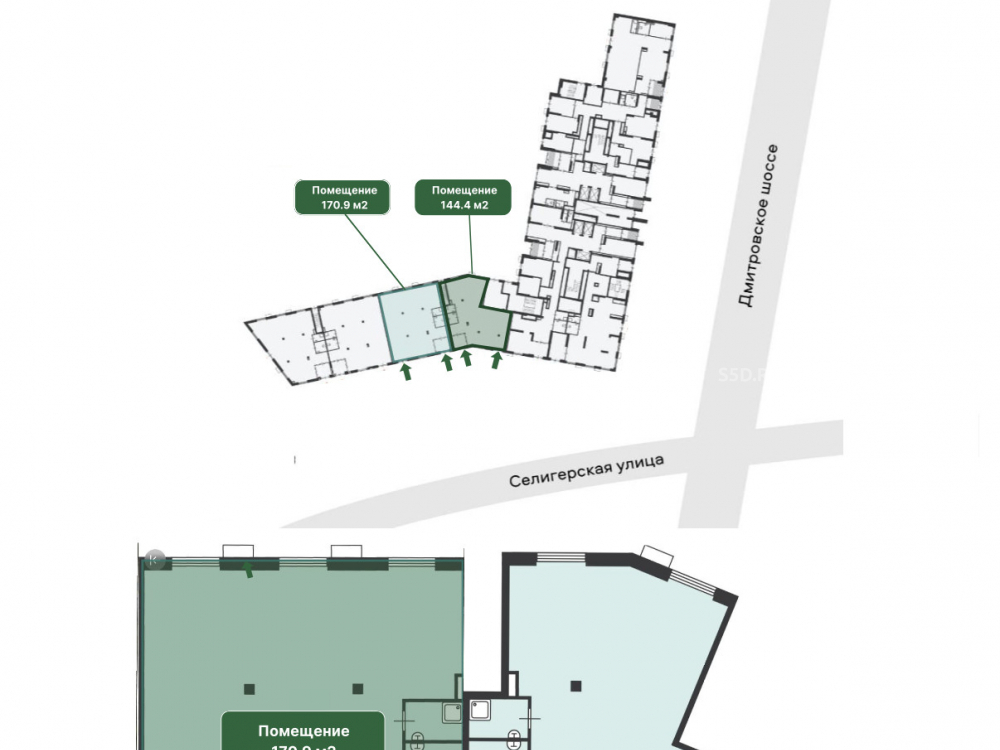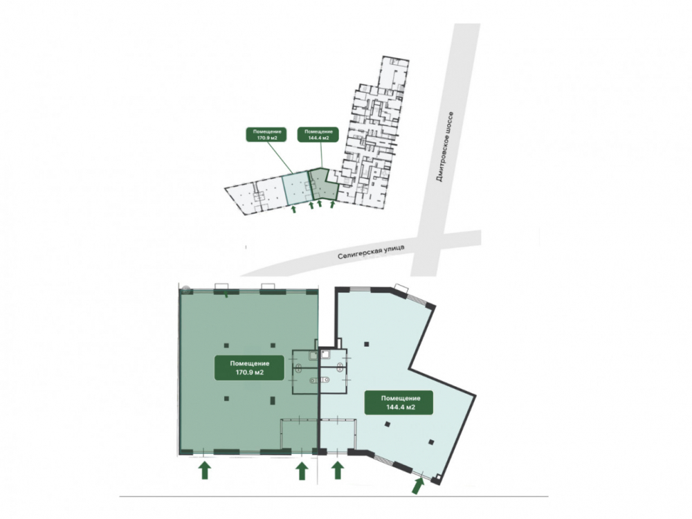 Помещение расположено на первой линии вдоль автомобильной дороги. В пешей доступности расположены остановки общественного транспорта и станция метро Селигерская с среднесуточным пассажиропотоком 100 тыс. чел.