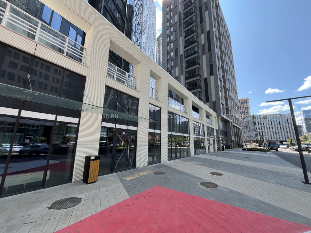 1-й этаж - 600.8 м². Стилобатная часть жилого дома. Общая площадь помещения - 600.8 м². Помещение имеет 3 отдельных входов с улицы. Витринное остекление в пол. Высота потолков более 5 м. Свободная планировка. Все центральные коммуникации. Место под вывеску над входом. Отдельный вент. канал для общепита. Состояние помещения - в бетоне.