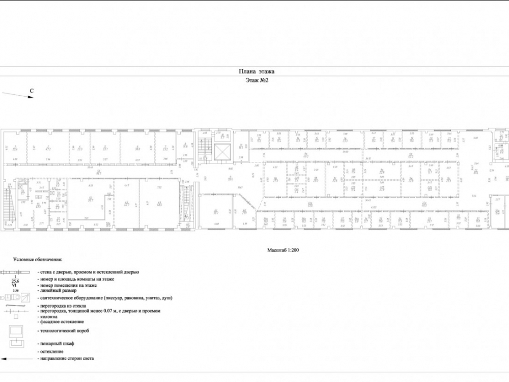 Общая площадь: 3366.7 кв. м, из низ 1 этаж - 1723 кв. м, h-4.35 метра, 2 этаж - 1643.1 кв. м, h-3.9 метра.