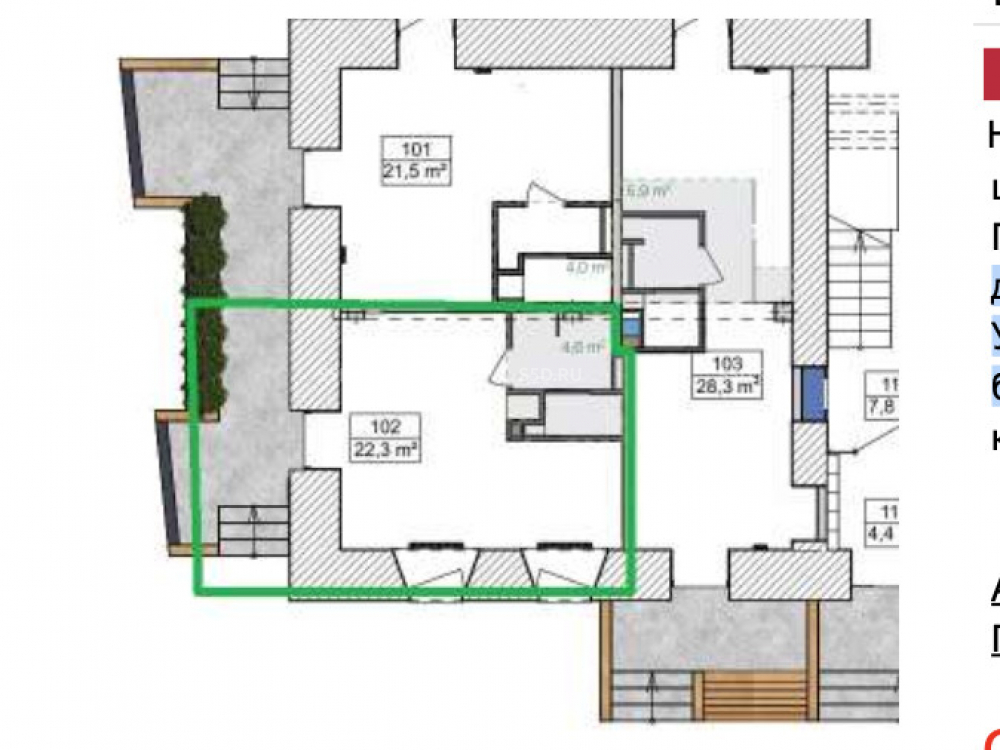 Общая площадь: 22.3 м2