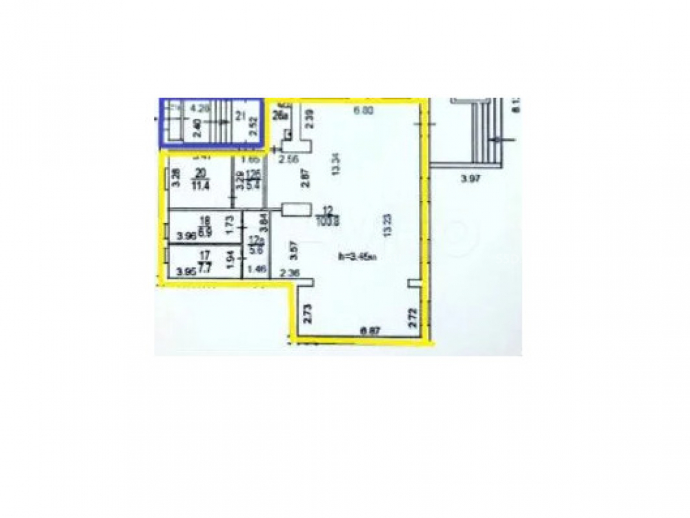 Площадь 67.5 м², первый этаж, высота потолков 3,5 м., электрическая мощность - 15 кВт , отдельный вход, отопление центральное. Витринное остекление.