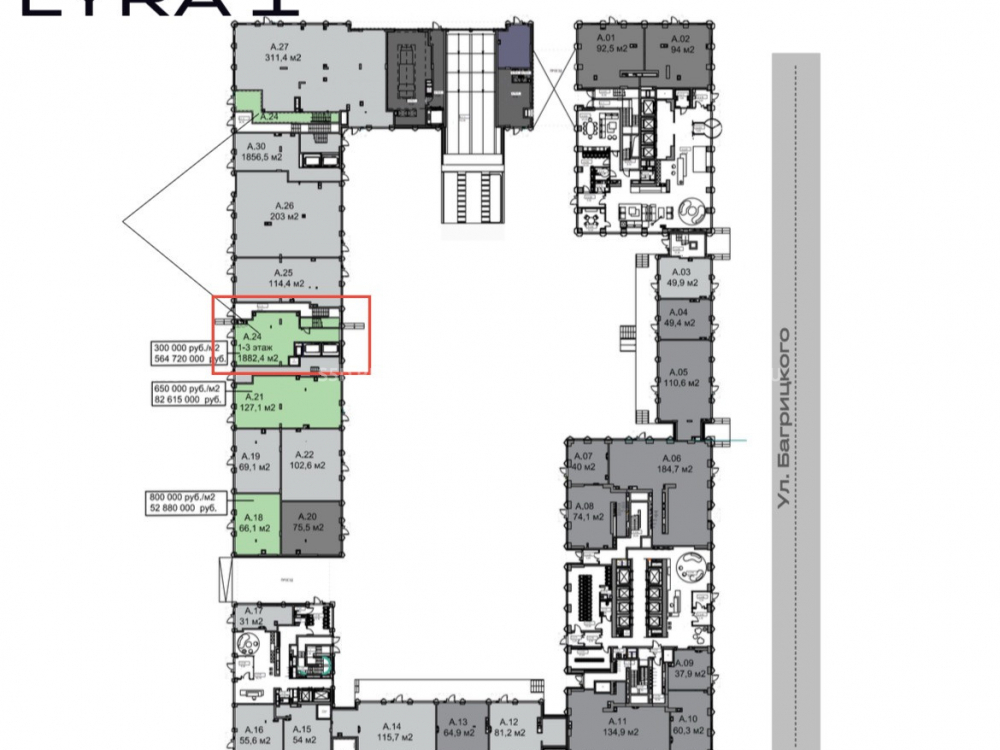 Продажа помещения свободного назначения на 1-м этаже современном мультиквартале бизнес-класса SET LYRA 1, по адресу: г. Москва, ЗАО, р-н Можайский, Верейская улица/ Общее количество квартир - 1 281.