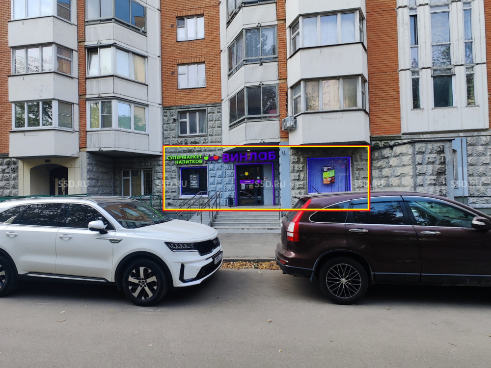 Помещение расположено на 1-ой линии в плотно застроенном жилом массиве, рядом с остановкой общественного транспорта и пешеходного перехода. Интенсивный пешеходный поток. Большие рекламные возможности, под размещения вывесок на фасаде дома над окнами в соответствии с регламентом г. Москвы. Наличие большого числа проживающих в многоэтажных домах вокруг и близость к метро-обеспечивает стабильно хорошую выручку у любого арендатора.