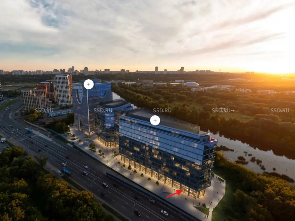 Бизнес-центр расположен в живописном районе Мнёвниковской поймы, прямо у берега Москвы-реки.
