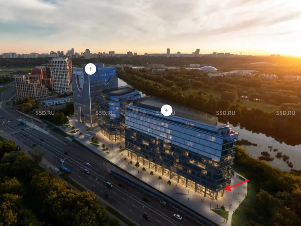 Бизнес-центр расположен в живописном районе Мнёвниковской поймы, прямо у берега Москвы-реки.