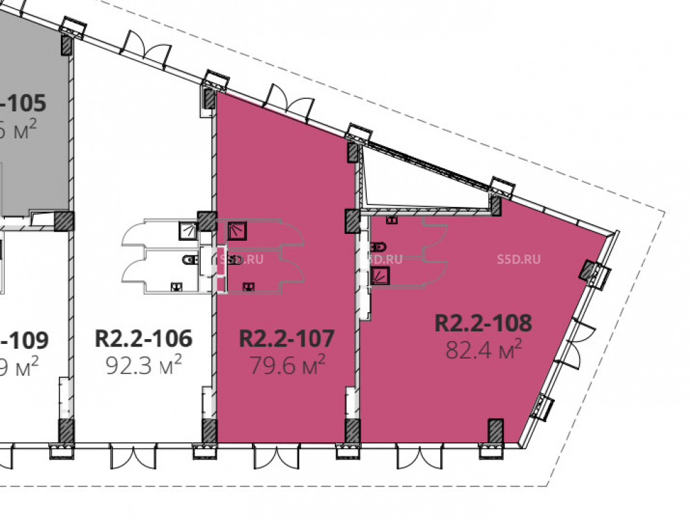 Общая плoщaдь: 82,3 кв.м. на первом этаже 12 ти этажного здания (башня M2.2). Прямой выход к набережной. Количество входов: 2.