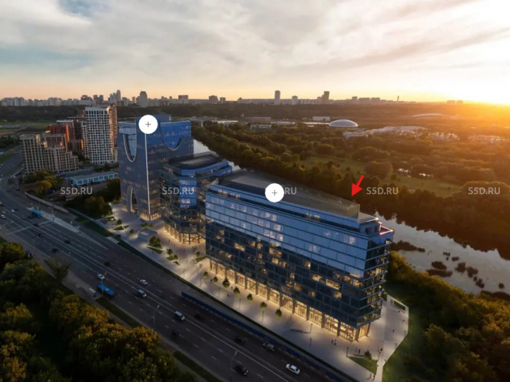 Бизнес-центр расположен в живописном районе Мнёвниковской поймы, прямо у берега Москвы-реки.