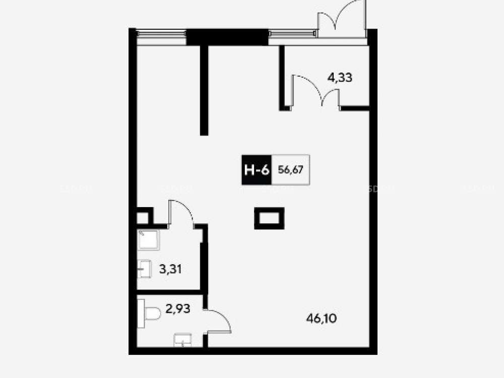 Общая площадь: 56.7 м2