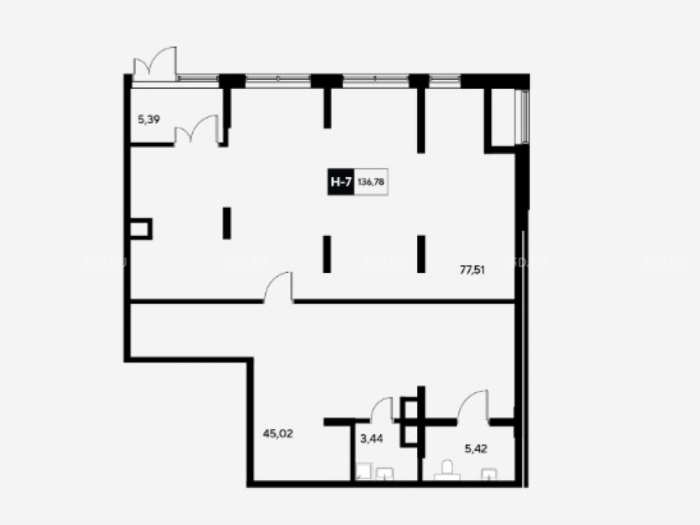 Площадь 136.78 м² , потолки 3,5 м., электрическая мощность 0,16 кВт на 1 м²., витражное остекление, центральные коммуникации.