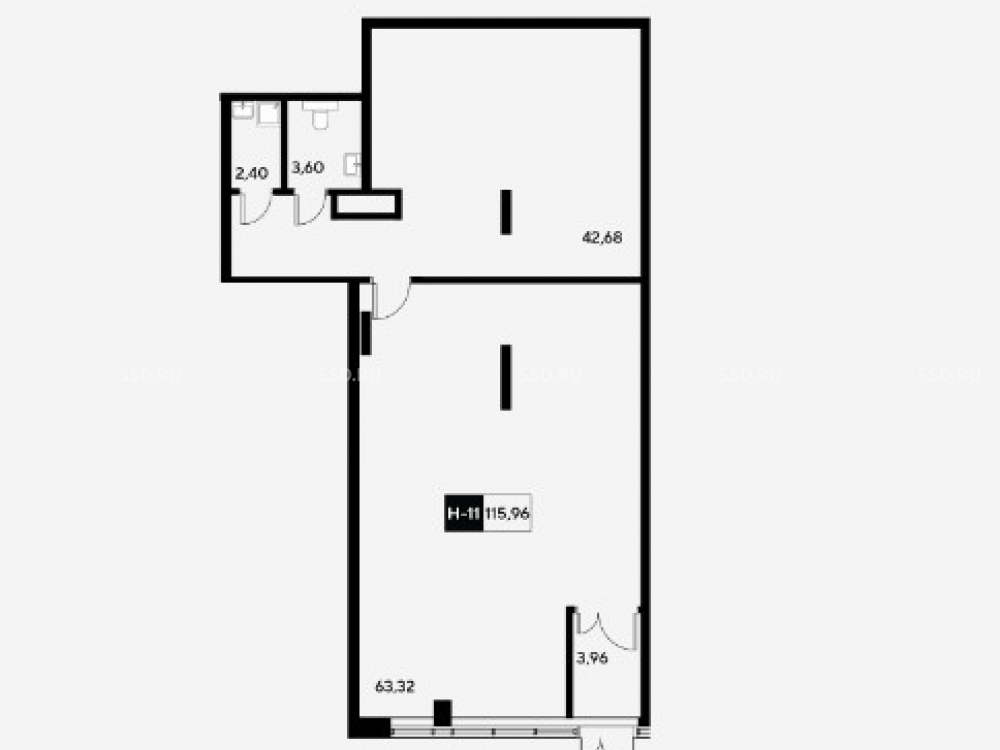 Площадь 115.96 м² , потолки 3,5 м., электрическая мощность 0,16 кВт на 1 м²., витражное остекление, центральные коммуникации.