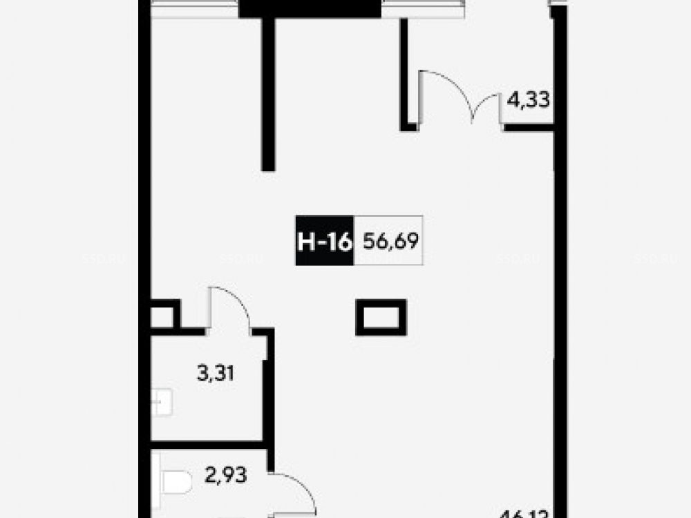Общая площадь: 56.7 м2