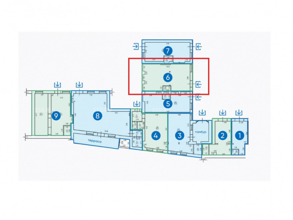 Общая площадь - 59,1 м². 15 кВт. Отдельный вход. Свободная планировка. Мокрая точка. Без отделки. Высота потолков 4 м.