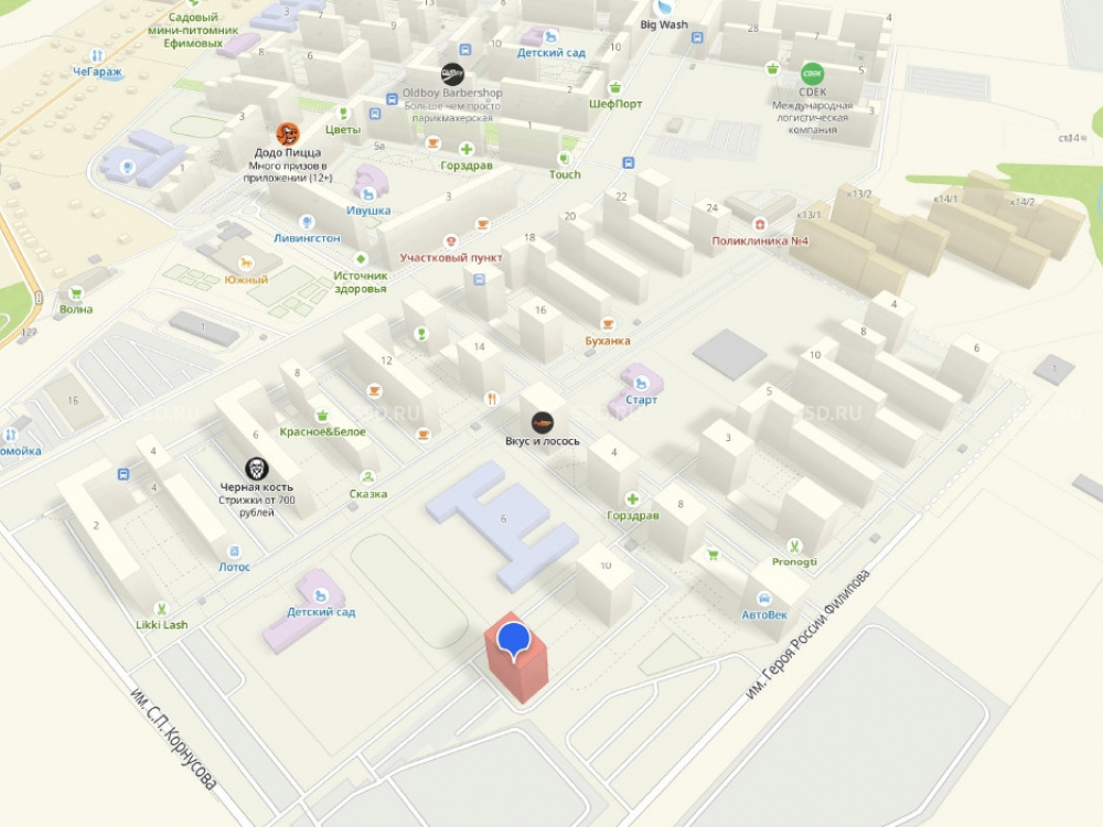 Ближайшие станции метро: Домодедовская – 20 мин. транспортом. В 10 минутах ходьбы располагается ж/д станция «Ленинская».