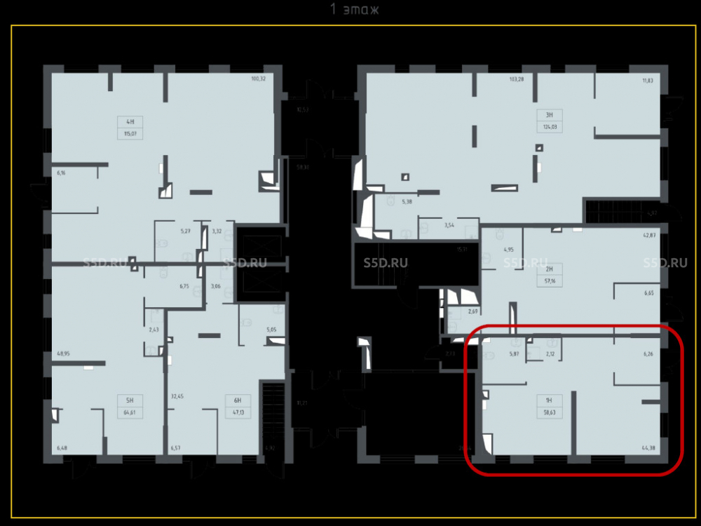 Общая площадь: 58.6 м2