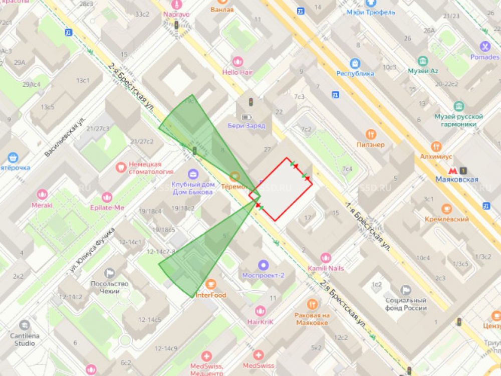 В пешей доступности расположены кафе и рестораны, магазины, центры здоровья и красоты, банки, детские сады, школы, спортивные клубы, кинотеатры, концертный зал имени П.И.Чайковского, Театр Сатиры и Театр имени Моссовета. Метро «Маяковская» находится в пяти минутах пешком.