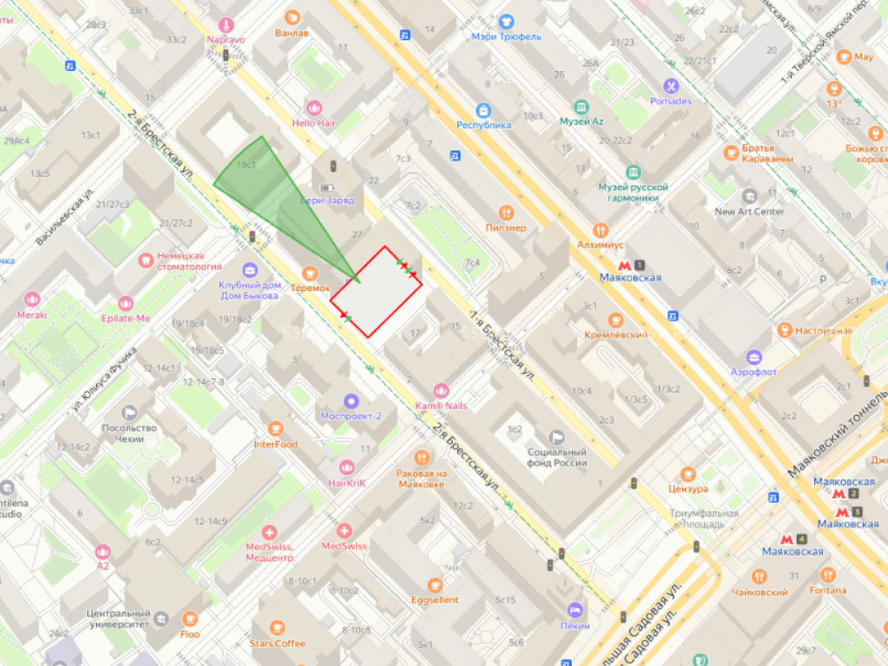 В пешей доступности расположены кафе и рестораны, магазины, центры здоровья и красоты, банки, детские сады, школы, спортивные клубы, кинотеатры, концертный зал имени П.И.Чайковского, Театр Сатиры и Театр имени Моссовета. Метро «Маяковская» находится в пяти минутах пешком.