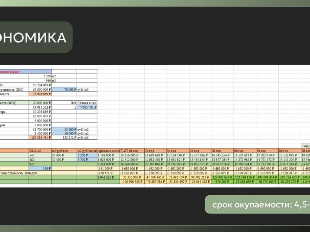 Срок окупаемости: 4.5–4.7 года.