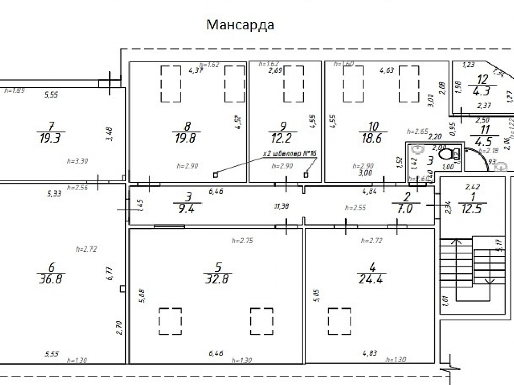 Высота потолков: Высота потолков от 2,8 до 3,4 м
