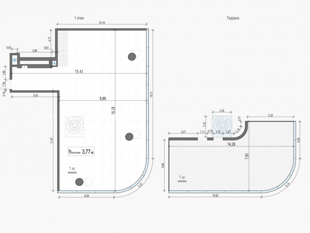 Высота потолков: 3.77 м.