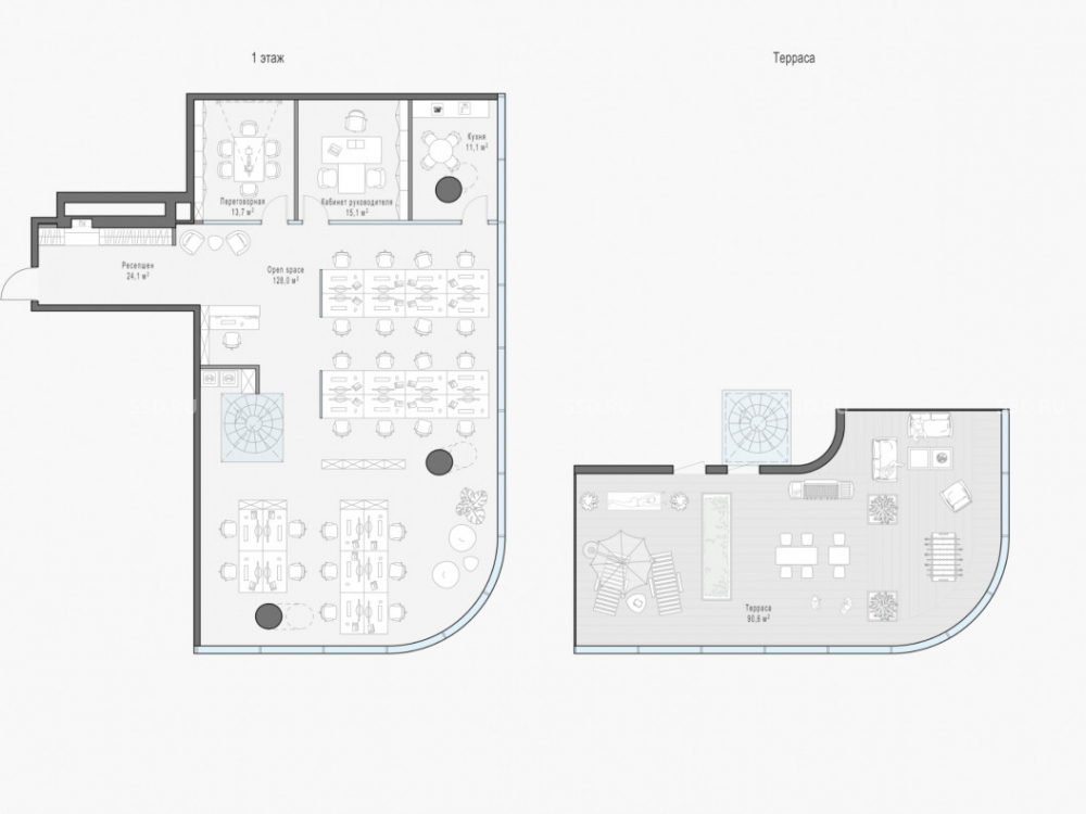 Площадь помещения: 288 кв.м. Видовой офис. Панорамное остекление и терраса на крыше.