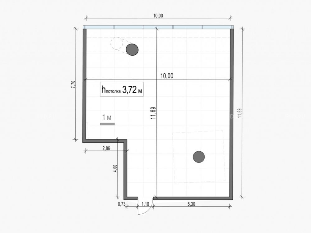 Высота потолков: 3.72 м.