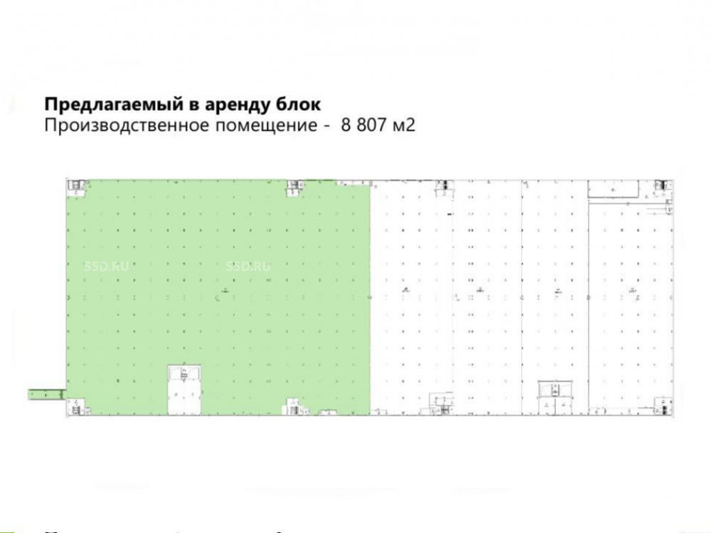 Общая площадь - 9487 кв.м., из которых площадь производственно-складская - 8807 кв.м., офисная площадь - 680 кв.м.