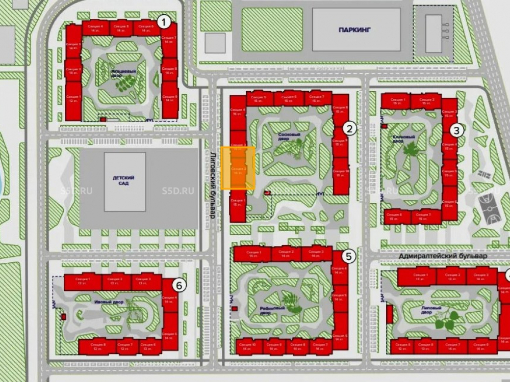 Дворы каждого дома внутри комплекса устроены по принципу «двор без машин»