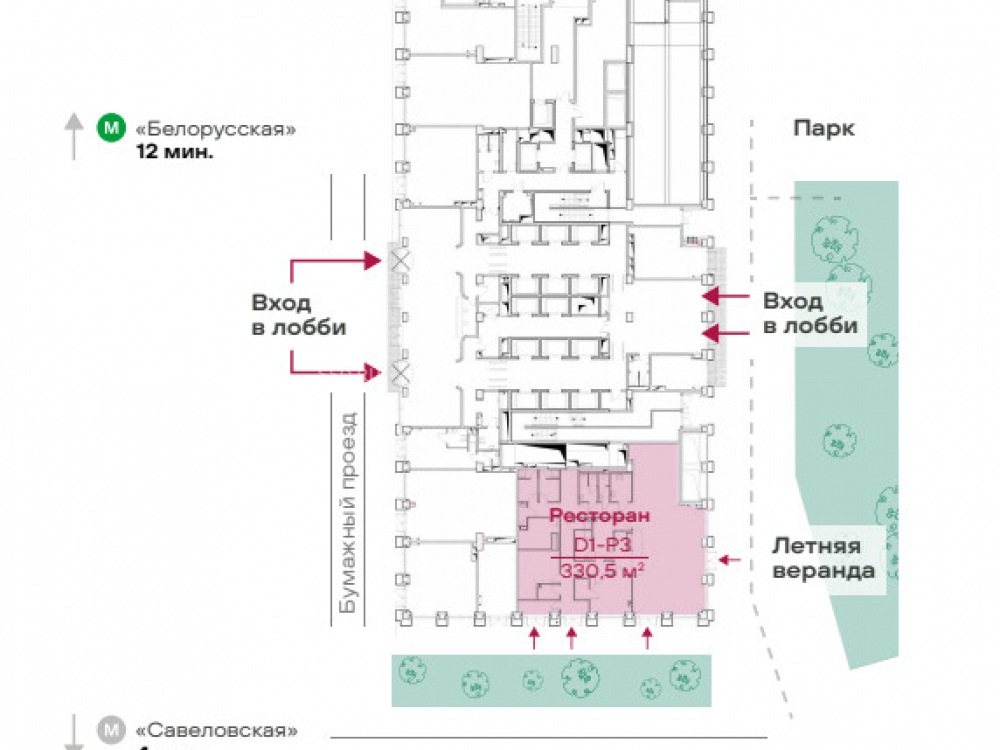 Москва, САО, БЦ TowerD D1-P3(P)/330,5м2/ Продажа ресторан с видовой верандой в парке