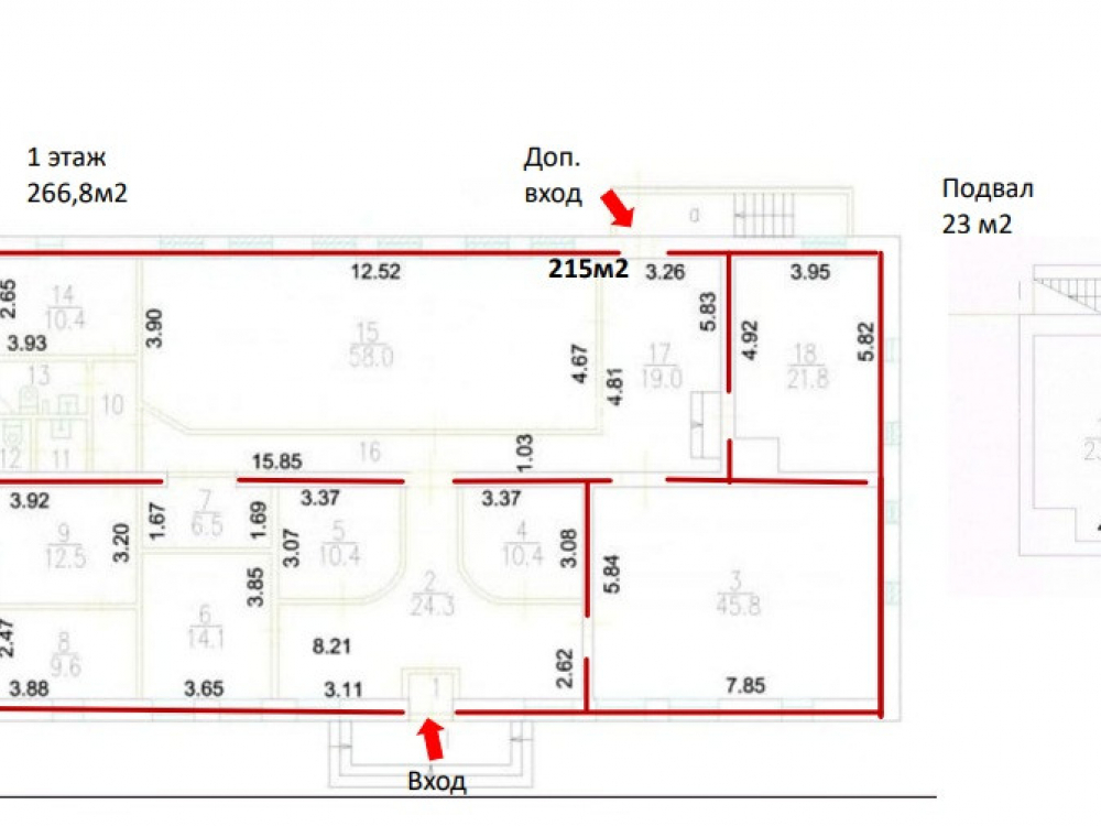 Характеристика объекта: Помещение находится в 1-этажном отдельно стоящем, нежилом здании. Общая площадь - 290 кв.м (23кв.м. подвал), два отдельных входа, зона разгрузки, высота потолков 3,5 м. Земельный участок площадью 1167кв.м. в ареннде от 2004 сроком до 2029г. /Земли населенных пунктов ВРИ: объекты размещения учреждений и организаций бытового обслуживания (1.2.5).