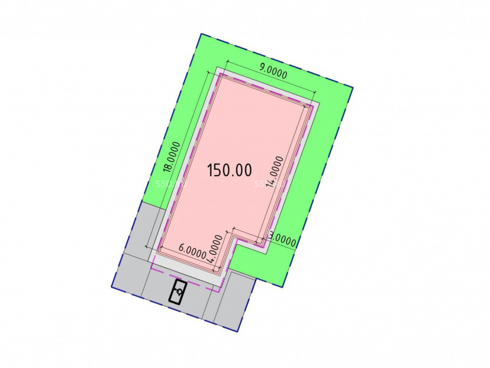 Предусмотрено возведение здания общей площадью 1100 кв.м. в 1 этаж.