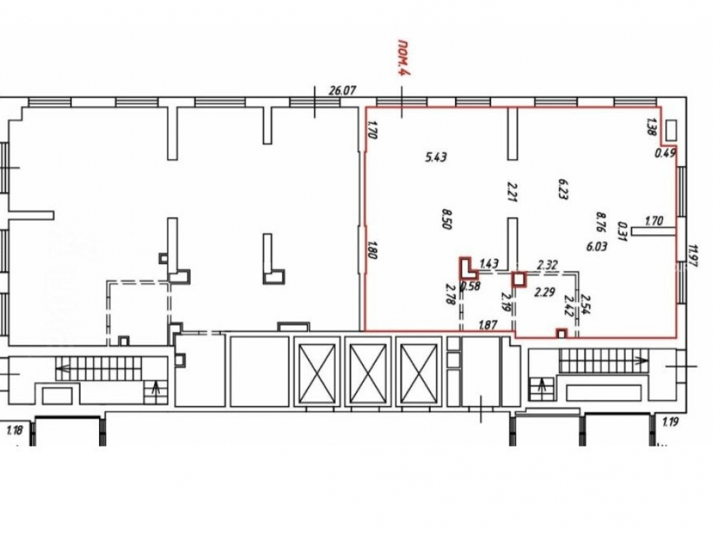 Помещение на 1 этаже общей площадью 213. кв.м. (состоит из 2х помещений на 2х кадастрах), угловое помещение, два входа с фасада отдельные: можно поделить при желании, тогда арендные платежи вырастут. Эл. мощность 42 кВт, высота потолков: 4,5м2, открытая планировка. Витринные окна.