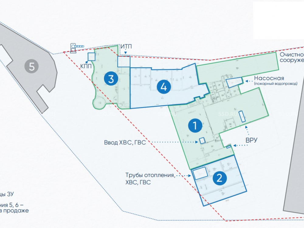 Коммуникации: ХВС, ГВС • Канализация • Электроэнергия • Отопление (вентиляция, кондиционеры) • Пожарный водопровод • АПС + СОУЭ • Ливневая канализация.